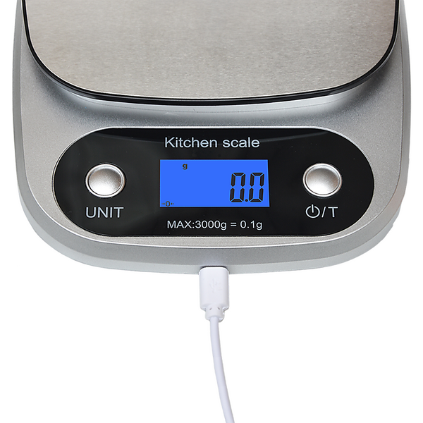 0.1g Digital Kitchen Scale 3kg Silver Brushed Steel High Precision Food Scale