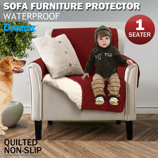 1 Seater Couch Sofa Cover Removable Quilted Slipcover Pet Kids Protector