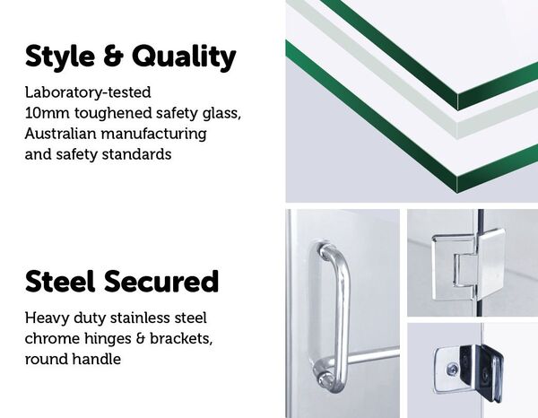 - Quality glass - All glass panels are laboratory tested 10mm toughened safety glass, which meets the required Australian Standard AS2208