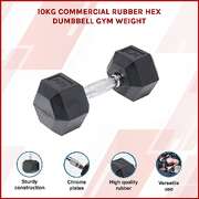 10Kg Commercial Rubber Hex Dumbbell Gym Weight