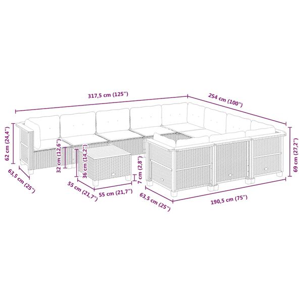 Garden Sofa Set with Cushions Modular Sofa 11 Piece Beige Poly Rattan