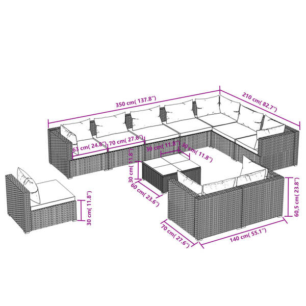 Stylish Grey Retreat: 11-Piece Poly Rattan Garden Lounge Set with Plush Cushions