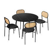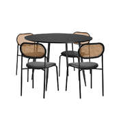 110cm Round Dining Table with 4PCS Dining Chairs PU Leather Black