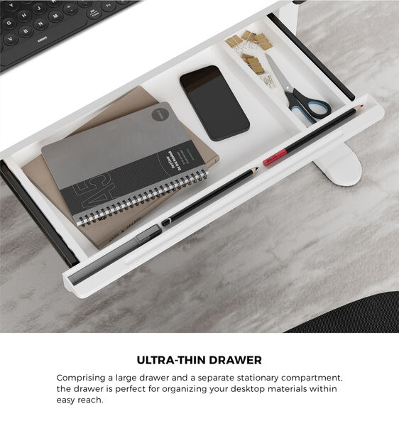 Studies have shown that a combination of sitting and standing at your desk can help improve your posture, enhance concentration and promote better health. And our Sit-Stand Desk Frame Set is designed to help you achieve all these with better productivity and efficiency in everything you do at the desk. The sit-stand desk frame features an all-metal construction and a smooth and powerful lifting system that works with incredible stability. No worries about equipment or stationery falling off your desk for sure. The 4-button control panel is easy to use with hassle-free switching between sitting and standing at your fingertips. Better still, the single motor works efficiently, smoothly and silently to get the desktop to your desired height within seconds. And all this while, a built-in anti-overload protection ensures no accidental breakdowns. Not least, the extended feet with adjustable footpads ensure a steady frame at all times. The spacious 16mm thick desktop is also designed to match the desk frame perfectly with all installation holes pre-drilled and factory-aligned for an easy fit. Plus, the thick desktop is made of eco-friendly and non-toxic material and given an anti-scratch matt finish that feels absolutely smooth and easy to clean and maintain. The rounded corners ensure no nasty bumps and safe working conditions all around. Not least, an ultra-thin drawer is aptly included with the desktop to help organise and keep all your desktop working paraphernalia close at hand within a spacious drawer and separate stationary compartment. With so much going for you, the Sit-Stand Desk Frame Set is your perfect working haven, home or at the office, in more ways than one. Get yours today.