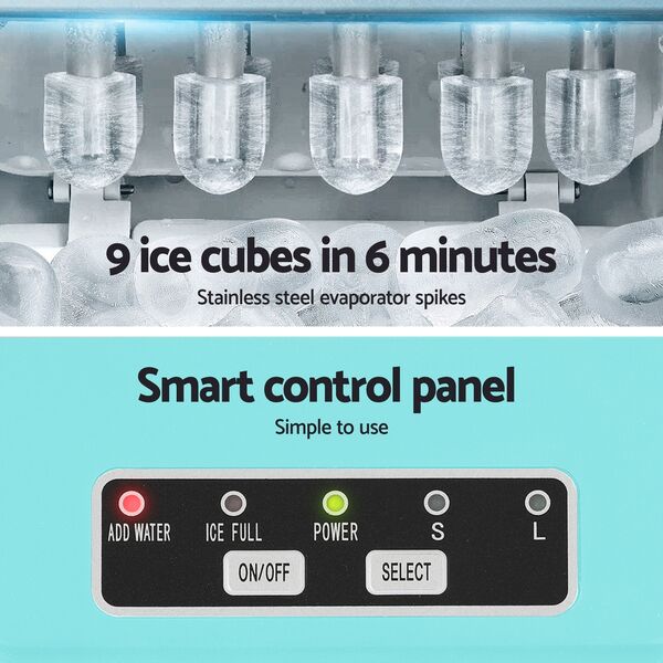 Looking for ice in a hurry? Meet our Ice Maker! Quickly produce 9 ice cubes in 6-13 minutes, with the flexibility to choose from 2 sizes. It's loaded with smart features like water shortage and ice full alarms, plus energy-saving technology through Freon-free refrigerant and enhanced heat dissipation. Its sleek, compact design fits anywhere, and with its easy-to-use controls, you'll be enjoying cold beverages in no time. Ice at home has never been cooler!