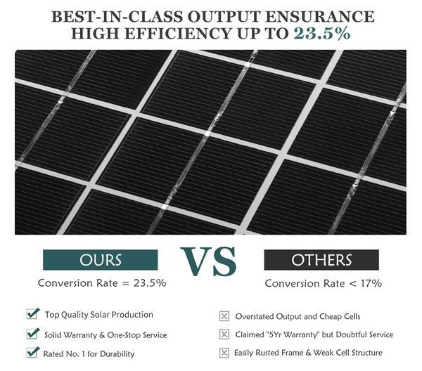 Ultimate Durability: Equipped with tempered glass, this panel is impact-, shatter- and water-resistant, making it the most durable solar panel on the market.