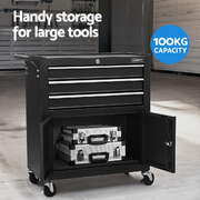 This robust, multi-drawer Tool Trolley is an essential for any workshop. Crafted from durable steel, it features smooth ball-bearing slides for easy access and a secure lock system for safety. Its spacious design includes varying drawer sizes to accommodate tools of all shapes, complete with non-slip liners. The chest is also mounted on castors with lockable front wheels, ensuring a smooth maneuverability and stable positioning. Sleek and functional, it's perfect for organizing and protecting your valuable tools.