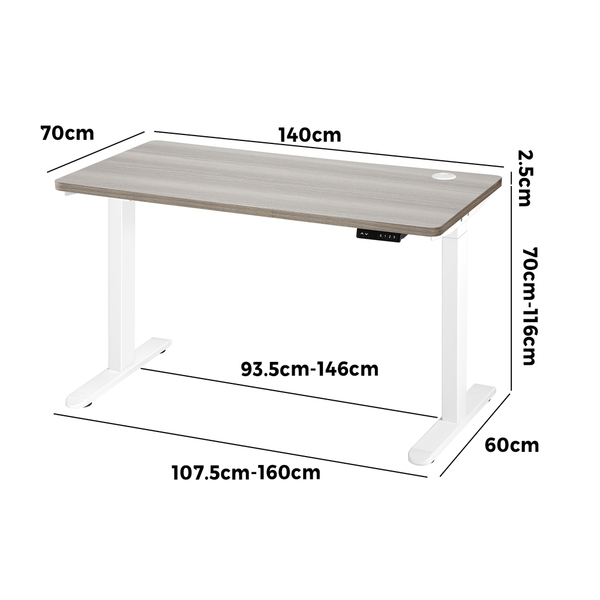 140cm Electric Standing Desk Dual Motor White&Grey-Oak