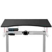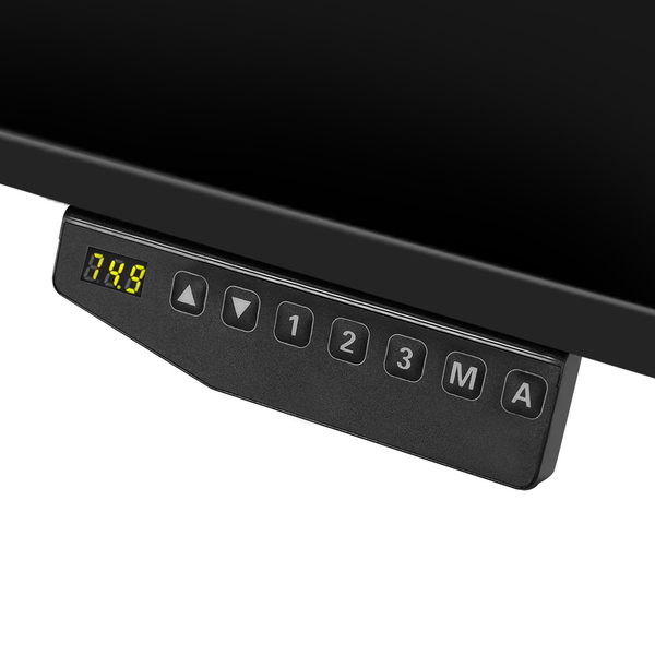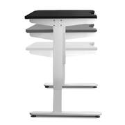 The stand comprises a minalist motorized height adjustable desk frame and operates