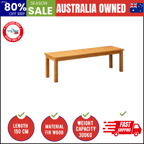 150cm Garden Bench Outdoor Wood Patio Dining Chair Slatted Seat 3 Seater