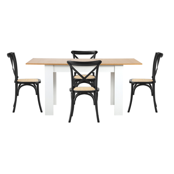160cm Extendable Dining Table with 4PCS Chairs Crossback Black