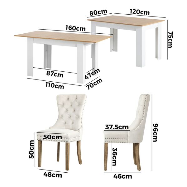 160cm Extendable Dining Table with 4PCS Chairs Velvet Beige