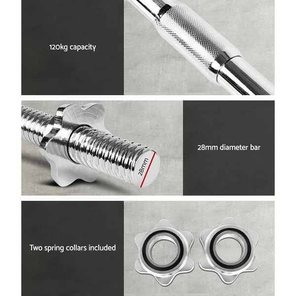 Our barbell bar is designed to fit most standard 28mm hole weight plates and able to hold up to 120kg. If you're looking to train up your arm muscles, this is the right one to go for!