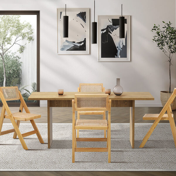 180cm Rectangular Dining Table with 4PCS Dining Chairs Foldable Natural
