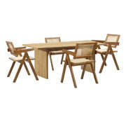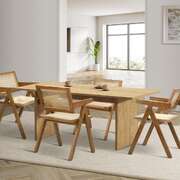 The accompanying rectangular table is more than just a surface for meals, it is a focal point for your dining room. Designed with practicality in mind, it offers ample space for feasts. Fostering an environment where connections are made, and memories are created, our set brings versatility to your dining space.
