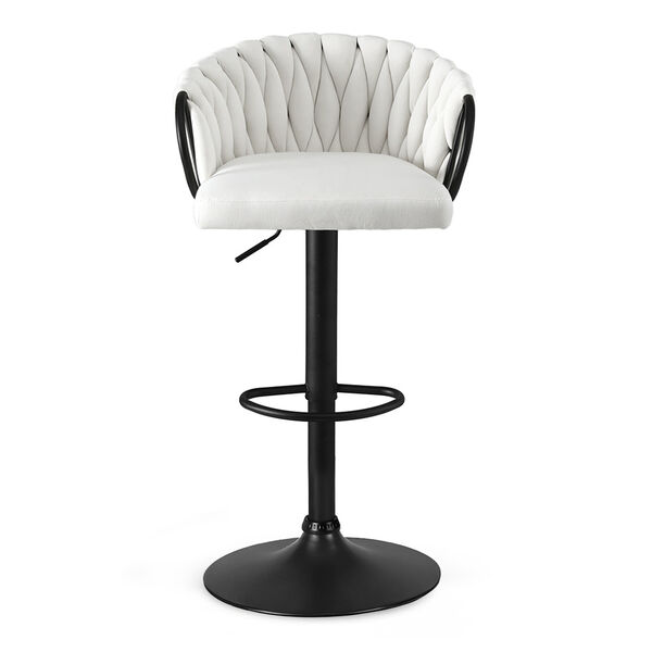 1x bar stool single kitchen dining chair counter stool woven velvet ivory