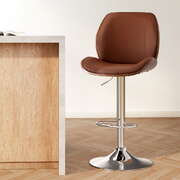 1x Bentwood Bar Stool Brown Leather Swivel Adjustable Kitchen Dining