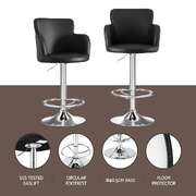 The 1x Leather Bar Stools combine modern functionality with enduring comfort for kitchen islands, breakfast bars, or entertainment spaces. Featuring luxe PU leather upholstery over plush foam padding, these swivel bar stools with full backrests provide all-day seating comfort. The SGS-certified gas lift lever allows effortless height adjustment, while the 360-degree rotation ensures easy mobility. Built with a corrosion-resistant chrome steel frame and stabilising base, these counter-height stools safely support up to 150kg. Complete with protective floor pads and tool-free assembly, they seamlessly blend durability with contemporary style in sleek black.