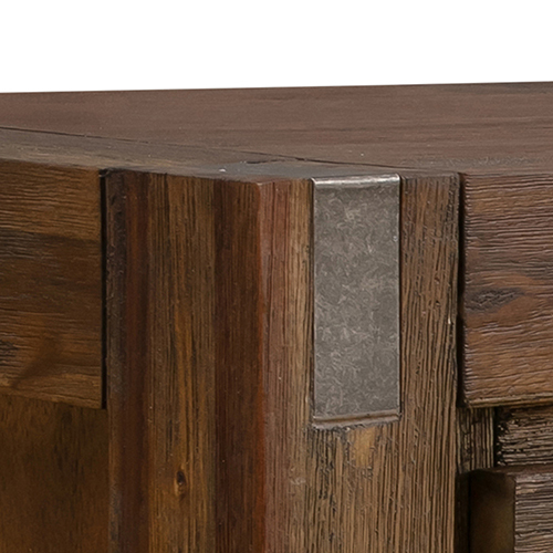 There is a metal made design on the both sides of the coffee table to offer a matching look with the handles. Nonetheless, metal wire brushed finish is given to it for a rustic look.