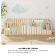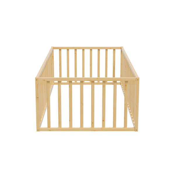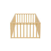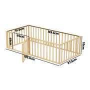 2-in-1 Kids Bed Frame Single Toddler Bed with Play Guard Fence Wood
