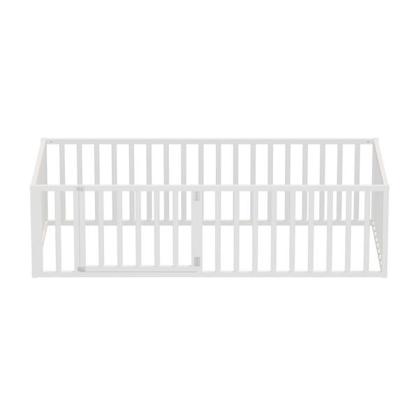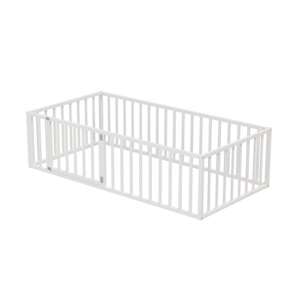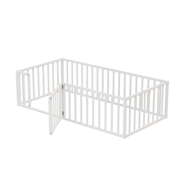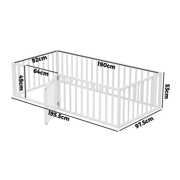 2-in-1 Kids Bed Frame Toddler Play Centre Guard Fence White