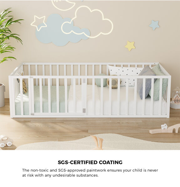 With a sturdy fence of adequate height that surrounds it, the bed frame ticks all the right boxes to keep the young occupant well protected. Plus, the fence gate is also lockable with a double-latch mechanism, and removable when required.