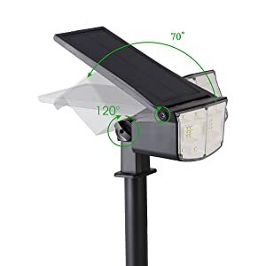 - Dusk to Dawn Bright Outdoor Solar Spotlights: Brighter cool white 40 LEDs, wider 120 lighting angle and 70 adjustable solar panel, longer working time with rechargeable 2200mah 18650 lithium battery. Our solar landscape outdoor lights is much more bright, fashionable and practical compared to other LED lights in the market.