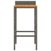 Contemporary Charm: 2-Piece Grey Poly Rattan and Solid Wood Bar Stool Set