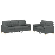 2 Piece Sofa Set with Pillows Dark Grey Fabric