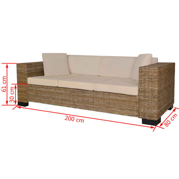This rattan sofa set combines style and functionality, and will make a great addition to your home. Thanks to the high-quality genuine rattan material, the sofas are easy to clean, hardwearing and suitable for daily use. They feature a sturdy wooden frame, which is highly durable and stable. The thick seat and back cushions and pillows are very conformable and washable thanks to their removable covers. In addition, the wide armrests add to your seating comfort. Delivery includes one 3-seater sofa, one 2-seater sofa, five seat cushions, four back cushions and four pillows.