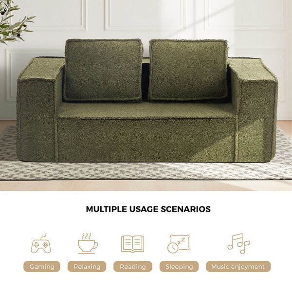 2-Seater Compressed Sofa in a Box Couch Sherpa - Green