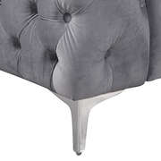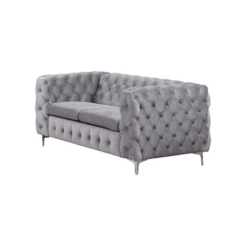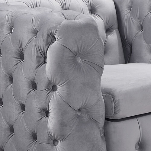 Grey Velvet Button-Tufted 2-Seater Lounge Sofa