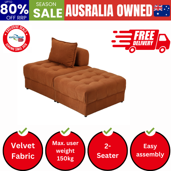 2 Seater Velvet Modular Sofa & Ottoman Set with Backrest Brown
