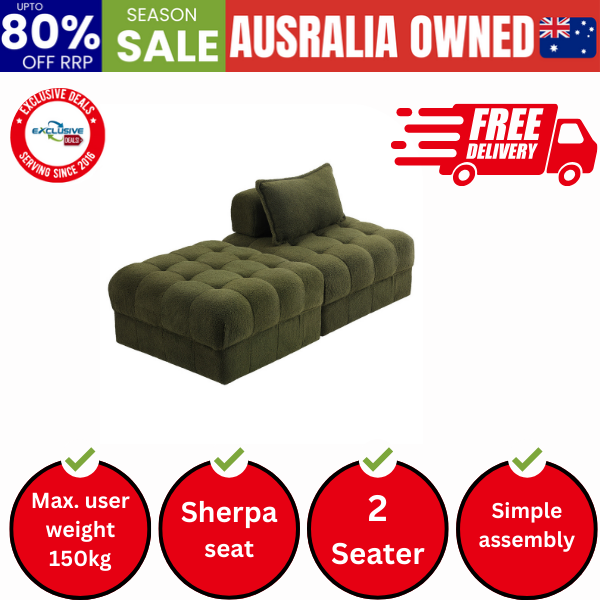 2 Seater Boucle Modular Sofa & Ottoman Set Green