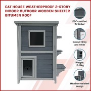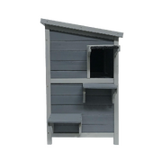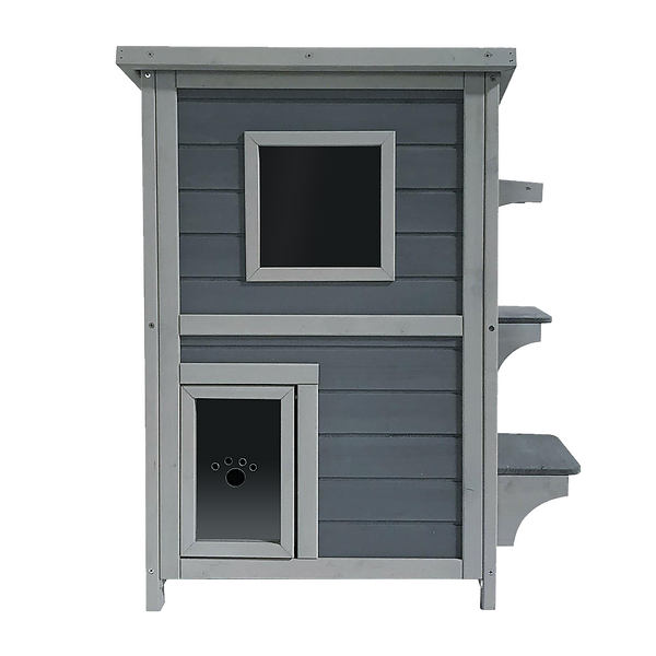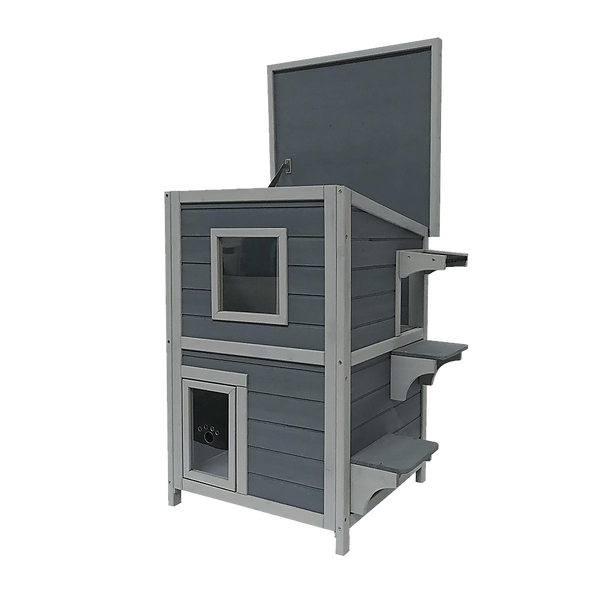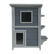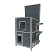2 Story Weatherproof Indoor Outdoor Wooden Cat House-Grey and white