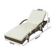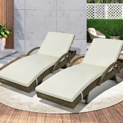 2X Sun Lounger Wicker Lounge Day Bed Patio Sofa Cushion Outdoor Furniture