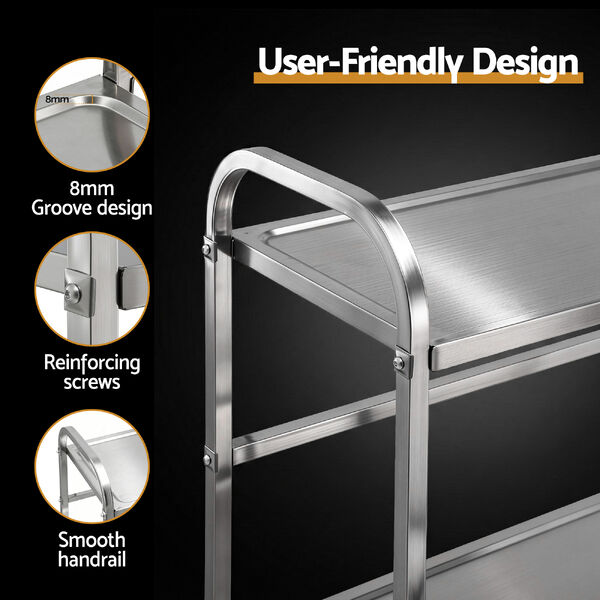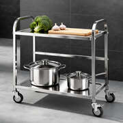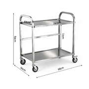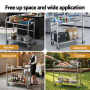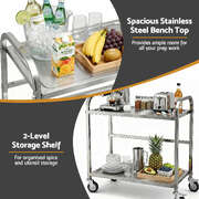 2-Tier Stainless Steel Kitchen Trolley With Wheels 84x56x98cm Utility Storage Cart