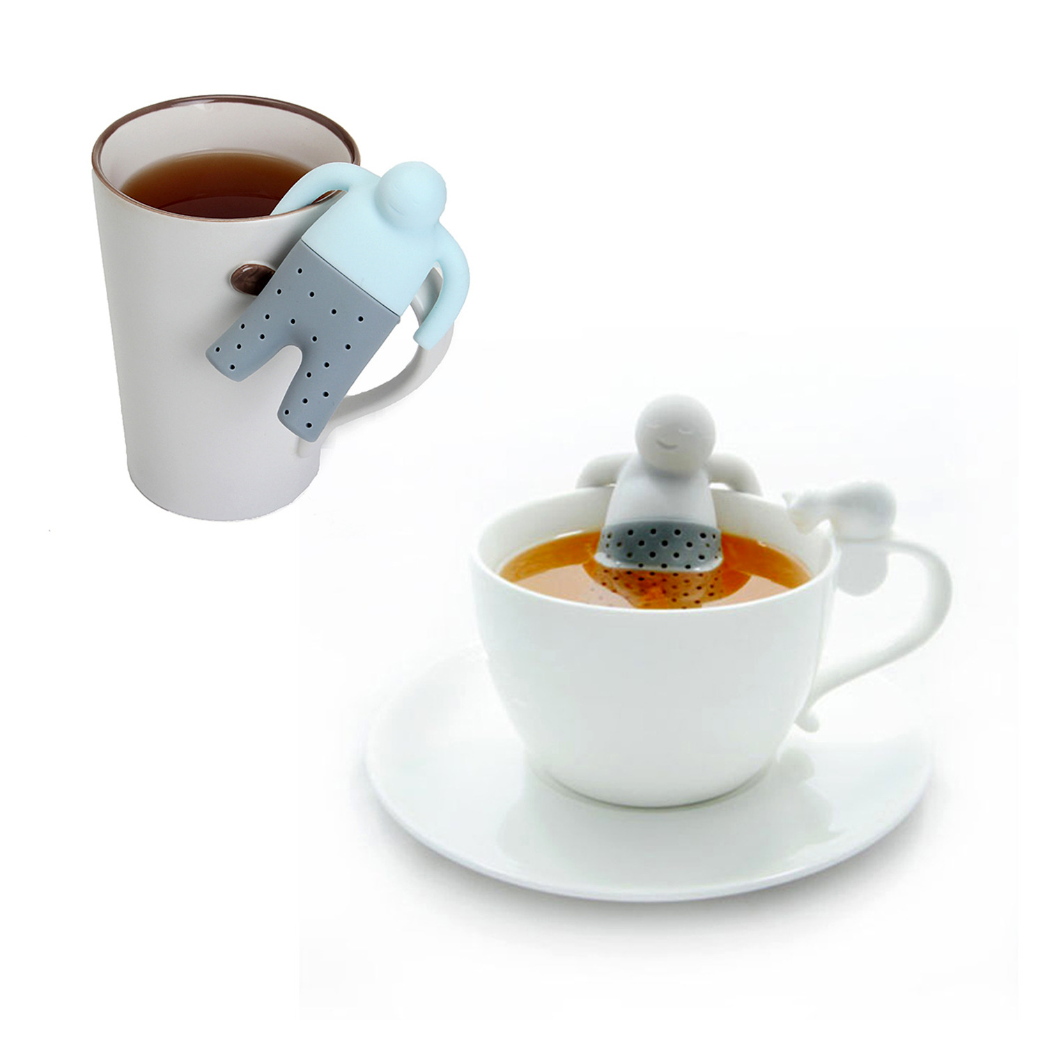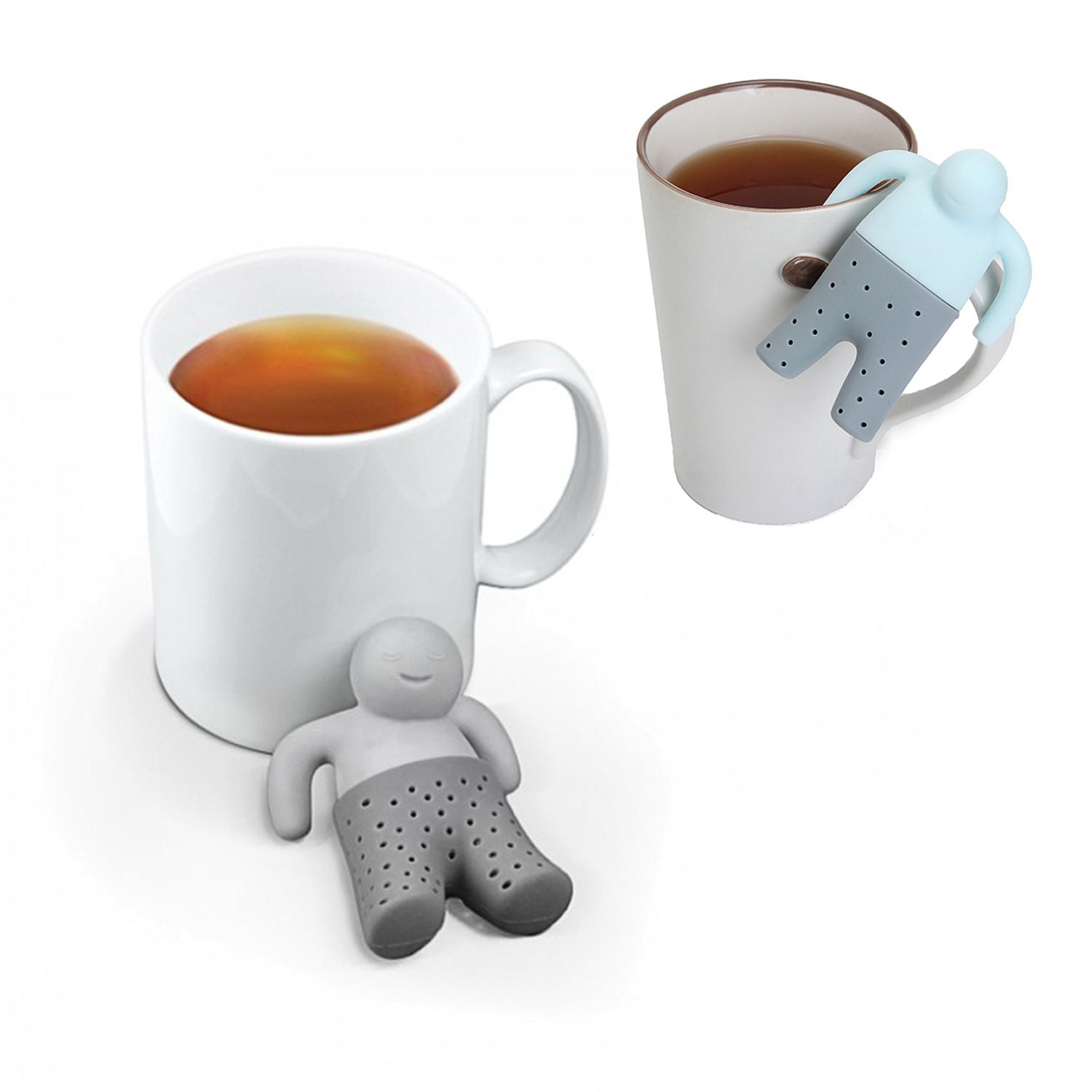 2 x Silicone Sir Herbal Tea Man Loose Leaf Infuser Silver 100% BPA Free Silicone