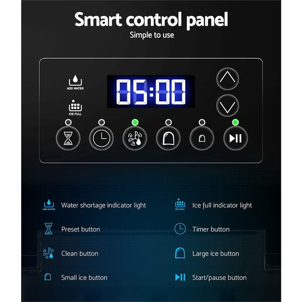 Capable of making 10 cubes every nine minutes, the Ice Cube Maker can also do two different sizes of its crystalline bullet-shape cubes. Just select your size option on the control panel it is really that simple! You can easily monitor the ice making process through the inspection window, and automatic sensors will let you know when the water level is low. A convenient water drainage plug lets water out of the machine easily. You can even set a timer for up to 24 hours of hands-free ice making complete with an auto-shutdown.