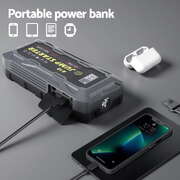 If you're looking for a simple, safe way to bring your vehicle back to life, our Portable Car Jump Starter is the only tool you need in your glove box. Instantly jump-start dead batteries with 2000 amps of peak lithium power, getting you back on the road in seconds. Engineered with ultra-safe smart clamps, this device features patented spark-proof and reverse polarity protection, ensuring a foolproof connection to any 12V vehicle. More than just a jump starter, it's an all-in-one power solution: the integrated QC3.0 power bank provides emergency power for your smartphone and other devices, while the built-in 400-lumen LED flashlight offers three light modes for roadside emergencies. Built tough with an IP66 waterproof rating and a compact, portable design, this jump starter delivers exceptional performance and long-lasting reliability, ensuring you're always prepared for the unexpected. Get yours today and drive with peace of mind.