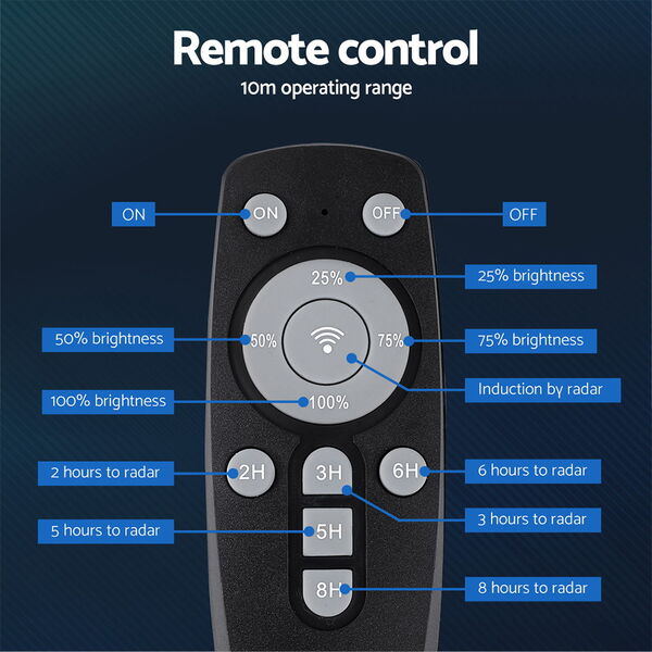 Looking for a robust and reliable lighting solution for your property? Look no further than the Solar Street Light, the premium choice for homeowners and business owners alike. With its photovoltaic solar panel and large-capacity battery, you can harness the power of the sun with maximum efficiency and long-lasting illumination. The light is ultra-bright and casts a wide net of light, guaranteeing clear visibility in your space. With an automatically activated light sensor, the lights detect darkness and automatically illuminate your space. Adjust settings conveniently with an easy-to-use remote control. Built to withstand harsh weather conditions, the light can easily be used outdoors. Choose from 10 different settings to tailor lighting to your needs, including a 2/3/5/6/8-hour timer and full/low brightness modes. Easy to install on any wall or pole using the included accessories, the Solar Street Light is the perfect lighting solution for villas, courtyards, streets, gardens and more.