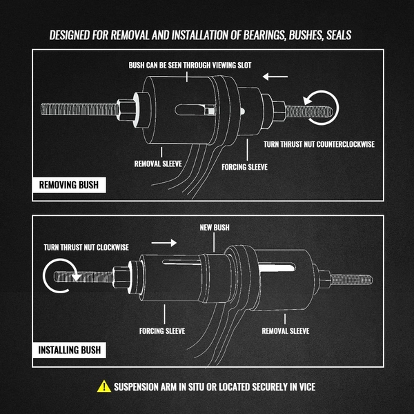 - Designed for the removal and installation of all types of bearings, bushes and seals. It is designed to remove and install bearings including silent bearings, hydraulic bearings, bearing bushes, ball bearings, shaft seals, rubber bearings and many more.