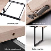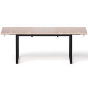 Maximize your dining area with the Extendable Table, the ultimate versatile solution, easily expanding from a 4-seater to accommodate six for family gatherings. This table is a cracker, featuring a natural light wood look top and matte black metal legs for a modern, Scandi aesthetic. Extension is easy as thanks to smooth rail slides, while the thick tabletop ensures a sturdy and durable build. It requires only simple assembly and is deadset practical, making it a reliable furniture investment for your home.