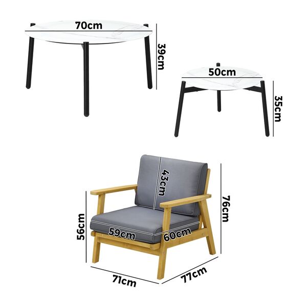 Outdoor Lounge Set 2pc White Coffee Side Table Sets with Chairs