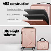 2Set 20 Inch Luggage Case with 12 Inch Handheld Luggage Box Hard Shell Travel Suitcase TSA Lock Rose Gold