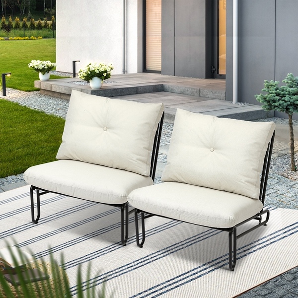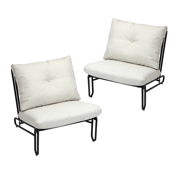 2PC Outdoor Lounge Chairs Patio Furniture Garden Sofa with Cushions Beige