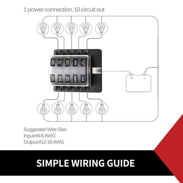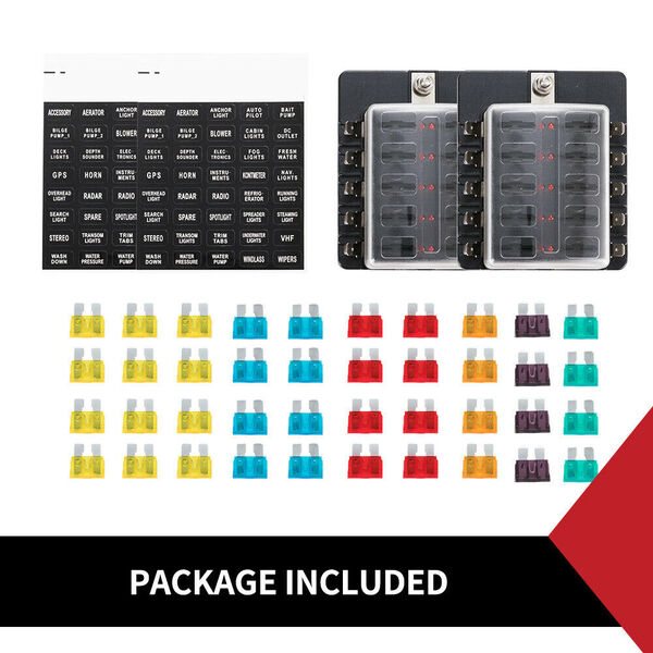 2pcs 10 Way Blade Fuse Box Auto Block Holder LED Indicator 12V/24V Car Boat