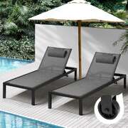 2pcs Outdoor Sun Lounges with Aluminium Frame, Wheels & Reclining Back