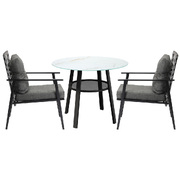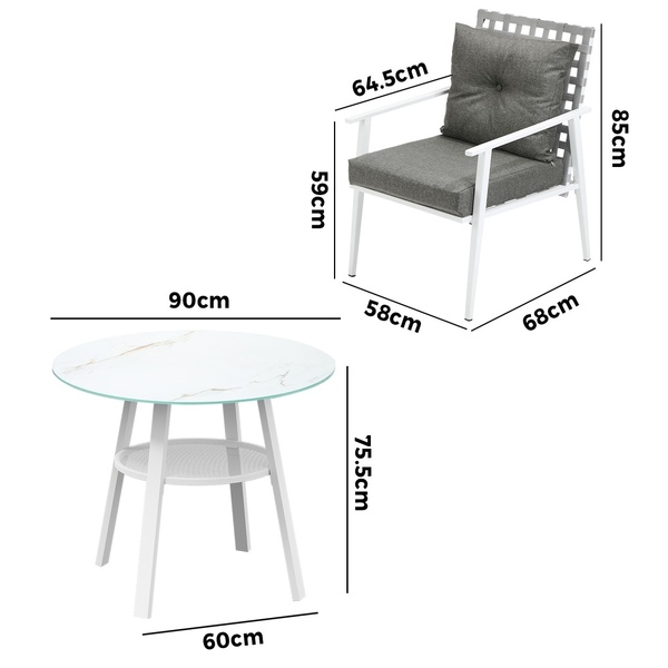 Living life to the fullest. Chilling out under the sun, moon and stars. Alfresco dining with friends, family or just with your precious me-time. Simply pursuing and enjoying life that is meant to be. And the Outdoor Dining Set is ready to be there at home with you. Stylish. Contemporary. Beautiful. For the dining table, a white ceramic tempered glass top with handy storage shelf beneath. And for the dining chairs, equally attractive pieces that go well with the table. The set has all the attributes of chic outdoor furniture that resonate with your discerning lifestyle. Have your lattes, your favourite brews and savour delectable cuisines and other gastronomical delights. Eat, drink and be merry! But how does the dining set stand up to the harsh and sometimes fickle Australian weather? No worries mate as it is all weather-resistant, chairs and table, with strength and durability for robust use. Not least, this dining setup also looks fabulous with any indoor eclectic styling ideas that you may have. Convinced that this delightful outdoor package is for you? Click on the Buy option and soon you will be feasting to your (and many others too) heart's content at the Outdoor Dining Set day and night, night and day, in every season.