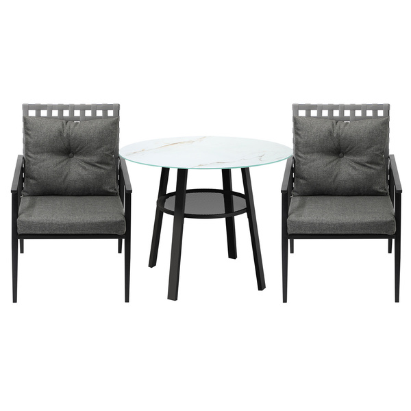 Outdoor Dining Set 2 Seater Patio Furniture Rattan Armchair Glass Table